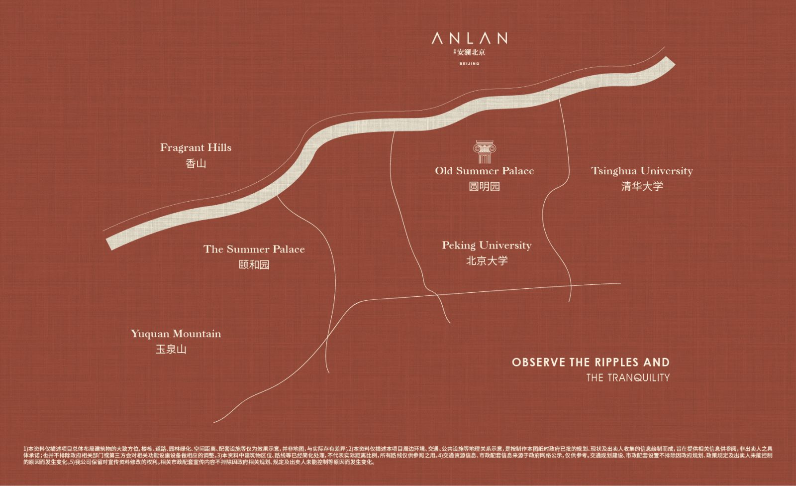 项目根植于千年文化遗产文脉腹地,地处西山皇家福祉,与圆明园、颐和园隔路相望——这片曾孕育90余处清代皇家苑囿的土地,以“万园之园”圆明园与颐和园为核心代表,为历代名士推崇备至,堪称中国古典园林艺术的典范。