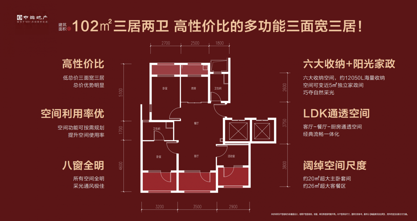 【实用空间】高使用率空间,相同建面,更多弹性空间!